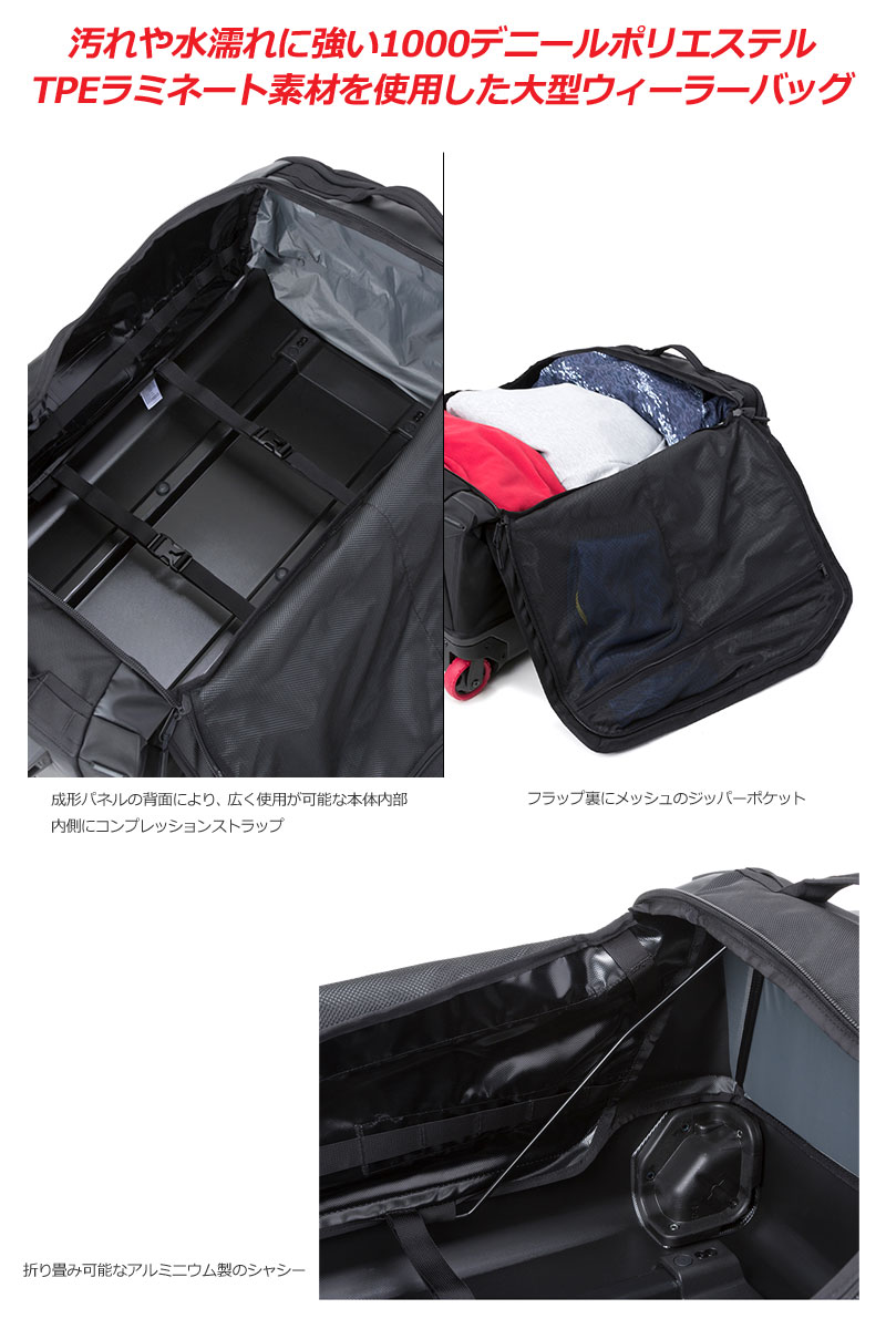 機能はさることながらスタイリッシュなデザインがファッションとしても愛されておりそのファンは年々増え続けているビックブランドです 商品説明汚れや水濡れに強い1000デニールポリエステルTPEラミネート素材を使用したホイール付きの大型(155L容量)ウィーラーバッグです。