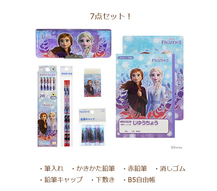 ☆スピード鉛筆名前入れ無料☆ -2020年新入学- 【アナと雪の女王2 文具セット】 / S4723775 / ディズニー プリンセス / サンスター 7点セット(筆箱 鉛筆 赤鉛筆 消しゴム 鉛筆キャップ 自由帳 下敷き) アナ雪 FROZEN2 *メール便不可 【PD3460】