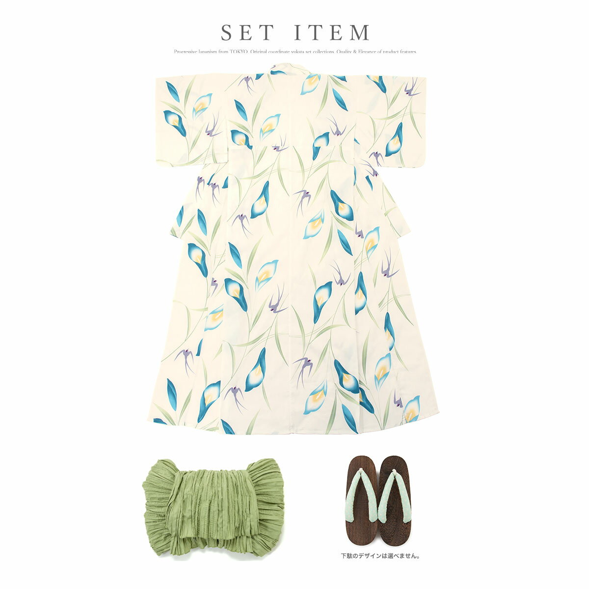 セットの下駄は、当店選別の「おまかせコーデ」です。