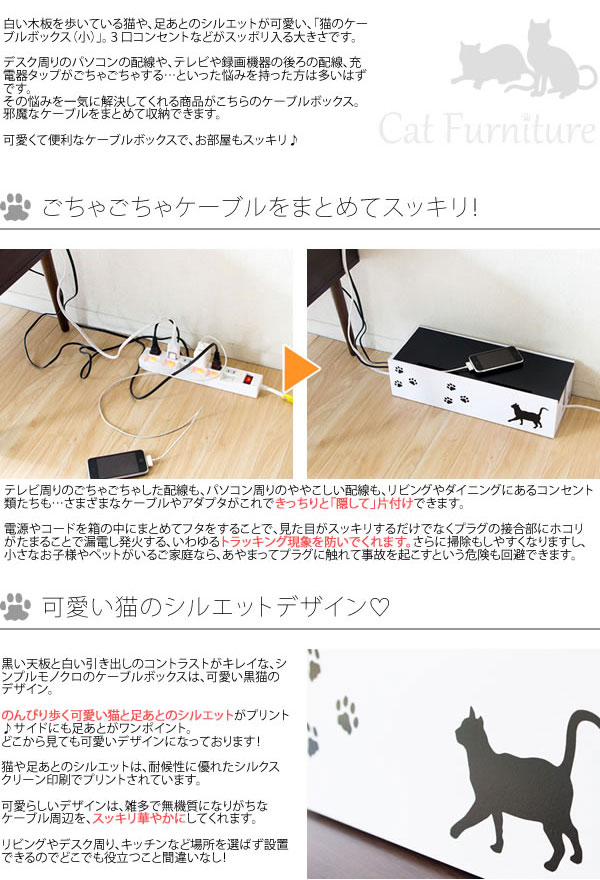 猫のケーブルボックス小のみ Sサイズ 黒猫シリーズ 幅25cm 奥行15cm 高さ11cm ブラックキャット デスク上整理 配線整理収納 コード穴 ケーブル収納 ケーブル目隠し 便利 おしゃれ かわいい シンプル 送料無料 【QSM-140】【JG】