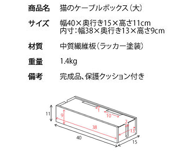 猫のケーブルボックス大のみ ビッグサイズ 黒猫シリーズ 幅40cm 奥行15cm 高さ11cm ブラックキャット 配線整理収納 コード穴 ケーブル収納 ケーブル目隠し 便利 おしゃれ かわいい シンプル 送料無料 【QSM-140】【JG】