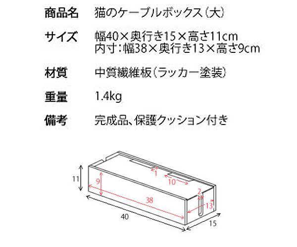 猫のケーブルボックス大のみ ビッグサイズ 黒猫シリーズ 幅40cm 奥行15cm 高さ11cm ブラックキャット 配線整理収納 コード穴 ケーブル収納 ケーブル目隠し 便利 おしゃれ かわいい シンプル 【QSM-140】【JG】